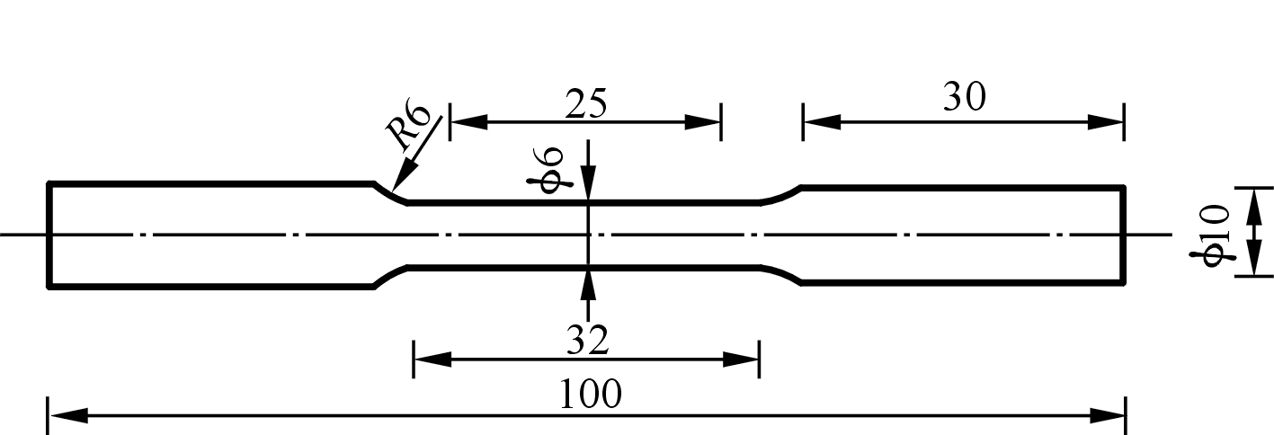 图2 拉伸试样尺寸示意图 图3和图4分别为熔盐法制备的Al-5Ti-1B中间合金的XRD图谱和显微组织。可以看出,Al-5Ti-1B中间合金包含Al、Al3Ti和TiB2等3种物相。结合有关研究可知,Al3Ti相主要以块状分布在基体中;纳米尺度的TiB2颗粒以团聚形式存在,主要沿着α-Al晶界分布。