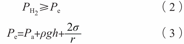 式中:ST为某温度下氢在铝液中的溶解度;Ps为铝液表面的氢气分压;Es为氢的摩尔溶解热;T为铝液温度;R为气体常数;K为实验常数。 氢原子在熔体降温过程中不断析出,但气泡体积并不是由零逐渐增大的,而是存在最小形核半径。当局部氢分压大于最小形核压力时,宏观氢气孔才开始出现并逐渐长大: