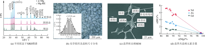 图2 EV31A合金XRD及铸态组织