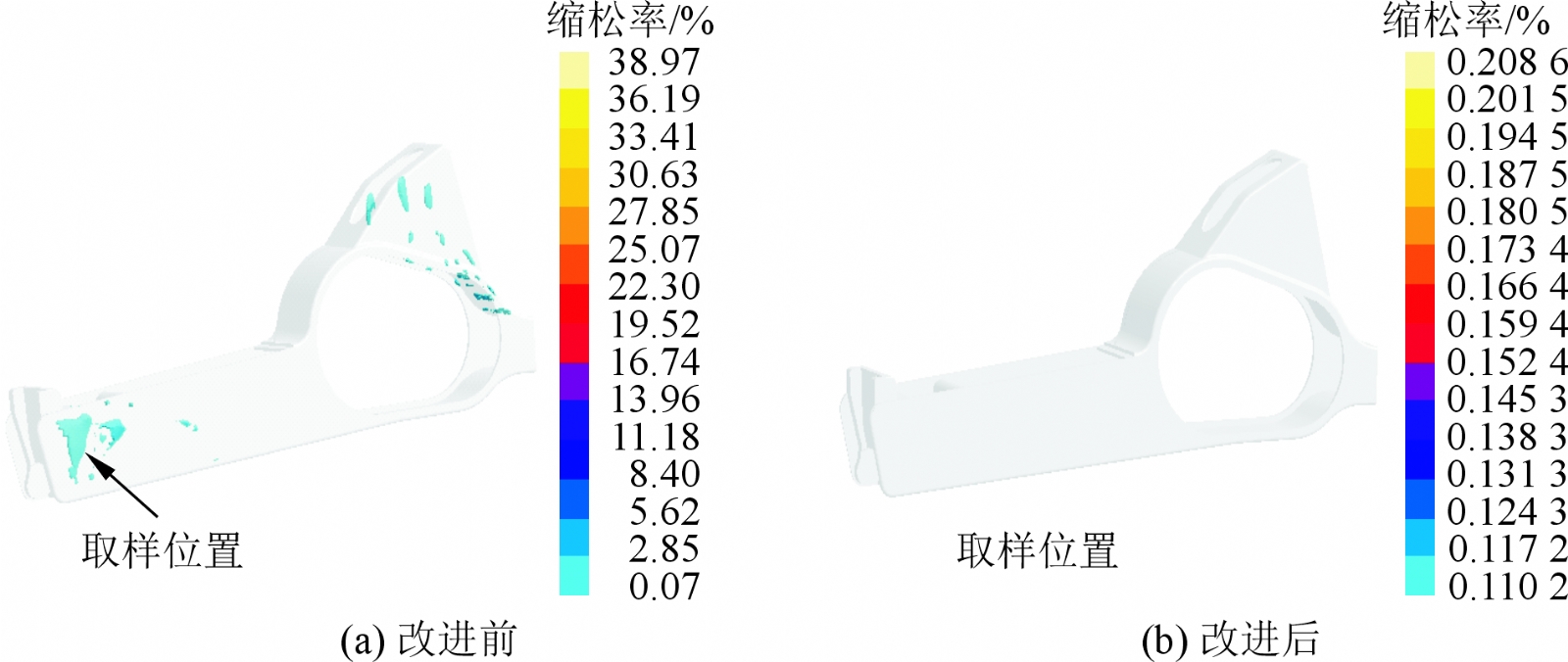 图10 改进前后缩松、缩孔缺陷分布对比图