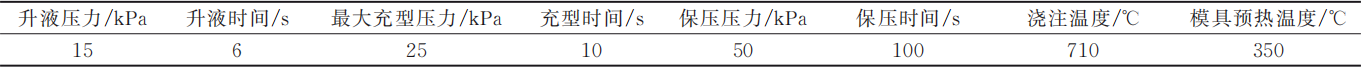 图3 低压铸造过程的压力曲线 表1 一体式车体低压铸造初始工艺参数