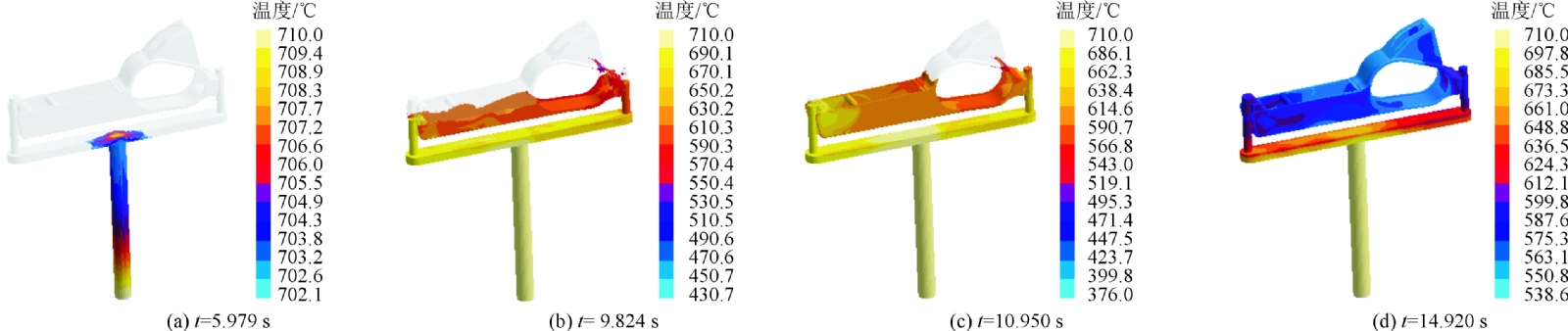 图6 铸件凝固过程温度场