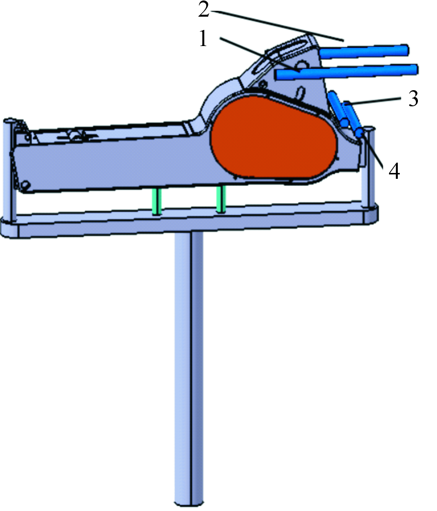 图1 一体式车体三维模型 为实现从下到上平稳充型,初步采用底注式充型。相对于其他浇注系统,底注式浇注系统可以更好地控制,结合计算得出的浇注系统各浇道的截面积。初步设计出浇注系统见图2。最终确定压力曲线见图3。 温度参数的合理性会影响到低压铸造铸件的成形质量,主要包括浇注温度和模具预热温度。温度设置不能过高和过低,而温度场是衡量铸造稳定性的重要因素,根据经验公式中AlSi7Mg0.3合金的温度设定,本试验确定浇注温度为710 ℃,模具预热温度为350 ℃。确定初始低压铸造的工艺参数见表1。