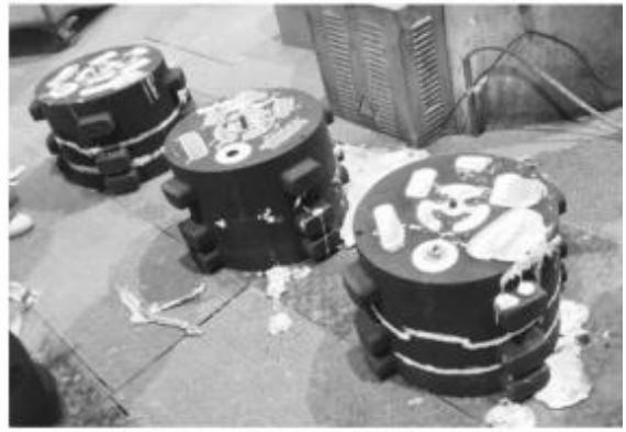 图8 浇注系统金属液流速 3.3 铸件试制及结果 依据优化工艺方案,设计了砂型模具,并采用3DP(3D printing)工艺制备了3套砂型模具。图9为3D打印砂型经组装后进行浇注的现场图片。浇注温度为720 ℃±5 ℃,浇注时间控制在约15 s。
