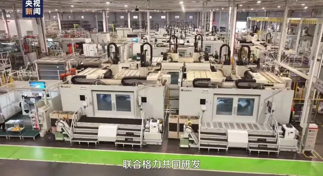 图源:央视新闻 该设备采用一体式铸造龙门结构,具备高刚性、高抗振性以及XYZ轴高速直驱等特点。与传统的靠齿轮传动的机床相比,它直接采用电动机驱动,没有中间损耗。其快移速度最大可达120m/min,加速度最大可达1.1G,其加速度和高速直驱技术处于国际领先水平。值得一提的是,这款产品在“第五十届日内瓦国际发明展”中荣获金奖。 据央视新闻报道,格力智能装备的高速双五轴龙门加工中心是应广东鸿图科技股份有限公司(简称:广东鸿图)的新能源汽车一体化压铸项目需求而开发的。2024年7月,格力智能装备向后者交付了首批设备。截至目前,格力智能装备已成功向广东鸿图交付了12台高速双五轴龙门加工中心。