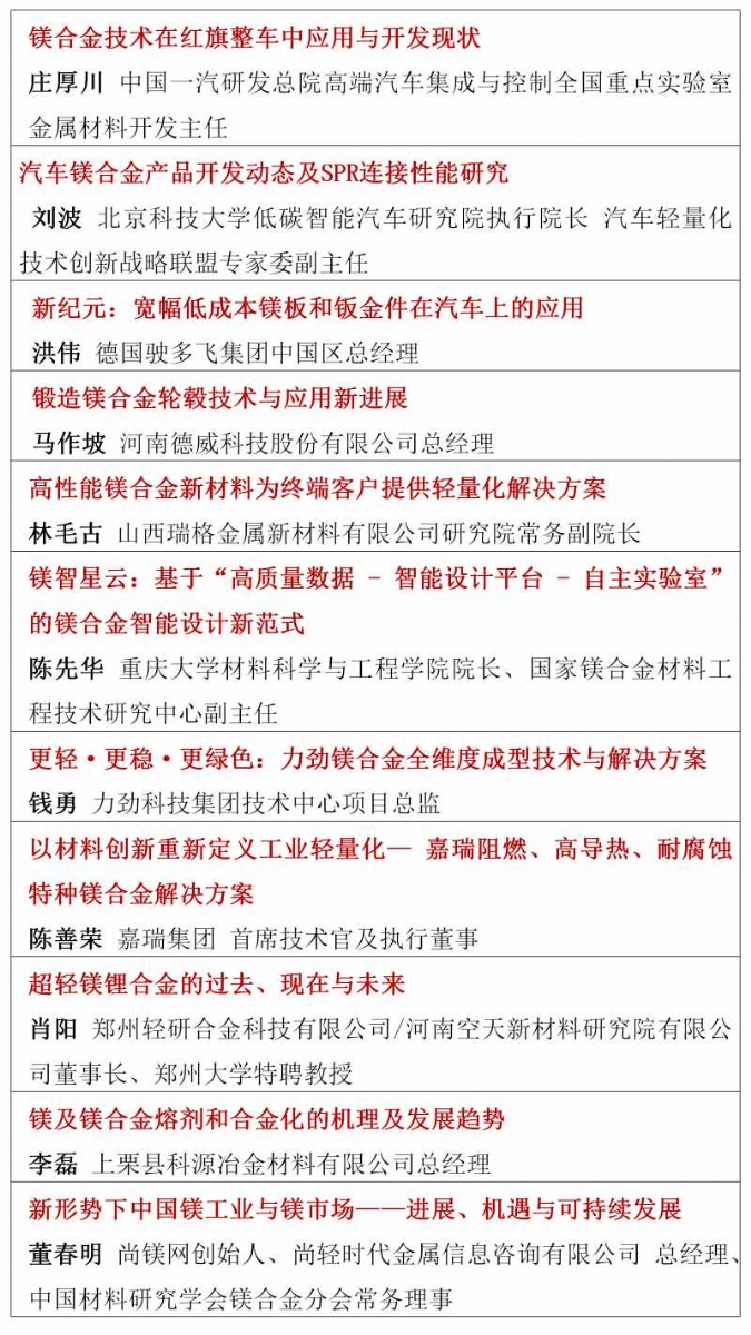 镁合金终端用户单位可免费参会,每公司仅限免1-2人,需经主办方提前确认,额满为止。(镁及合金终端用户单位指:汽车、自行车、摩托车整车厂/品牌商;手机、电脑、通讯器材、工具、休闲用品、人形机器人、飞机及航空器等终端产品品牌商,不含零部件厂商。)