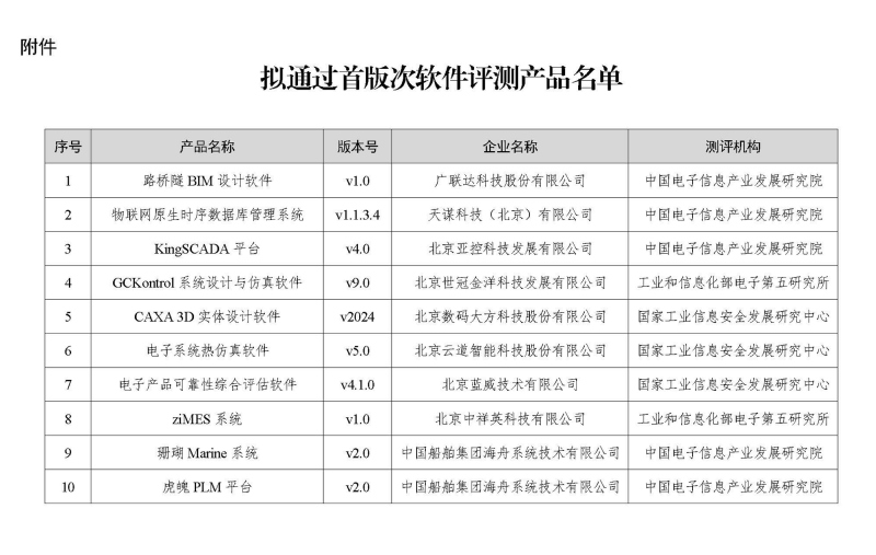 国家首版次软件产品名单