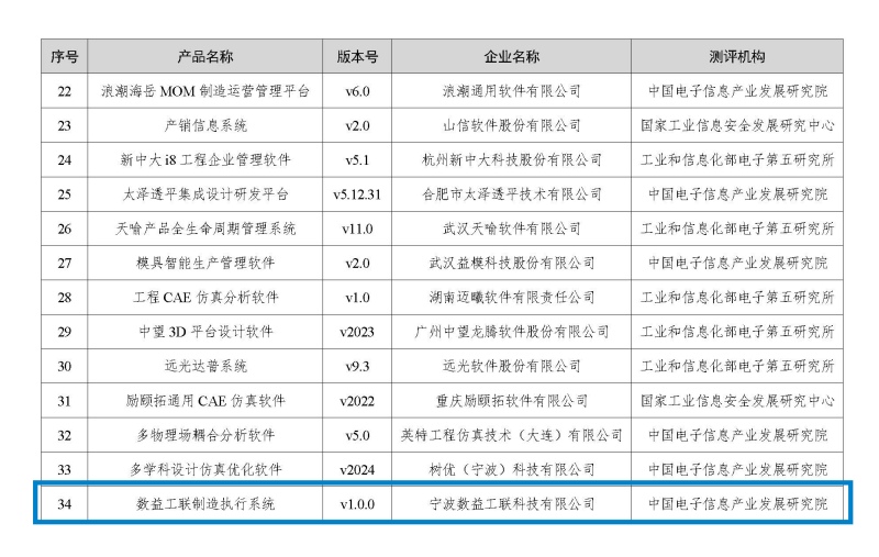3月23日,国家工业和信息化部信息技术发展司正式公布《拟通过首版次软件评测标准产品名单》,数益工联自主研发的“数益工联制造执行系统”成功入选