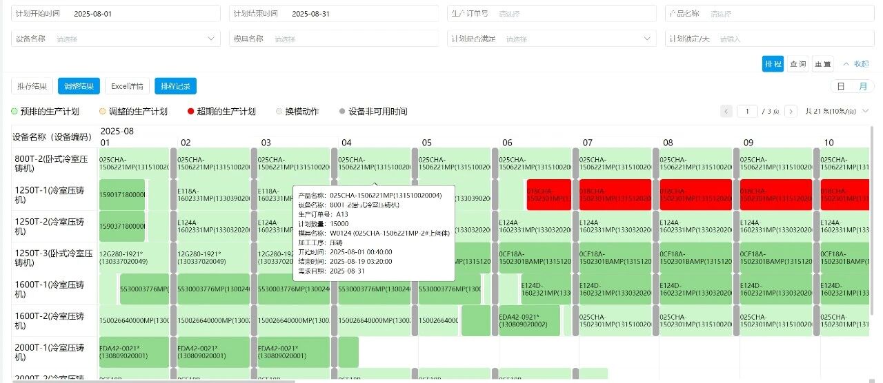 APS可视化排产结果(数据仅为演示)