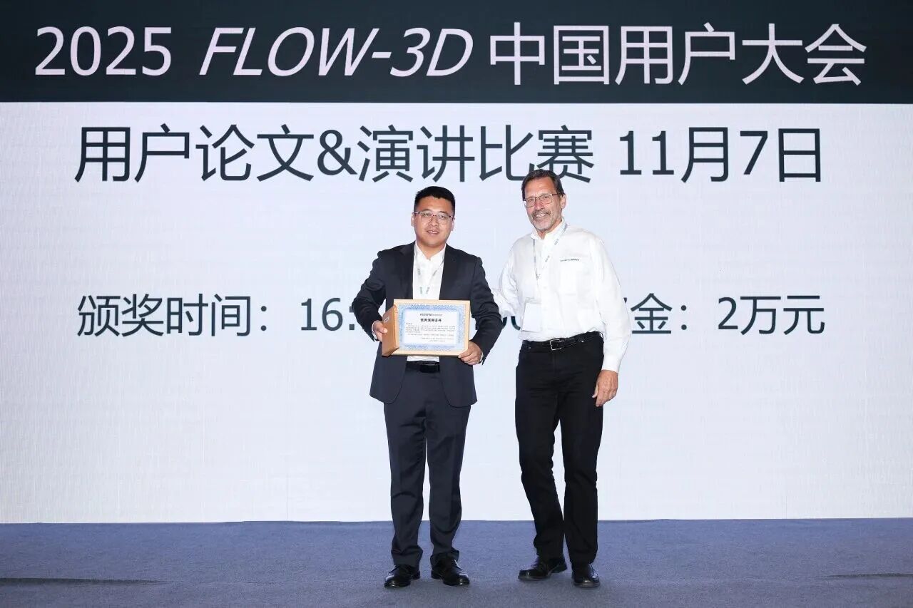 获奖者:江苏凯斯福轻合金有限公司孙晶莹博士 此次大会的成功举办,为行业内各方搭建了高效的技术交流桥梁,进一步推动了FLOW-3D CAST技术在铸造领域的深度应用与创新发展,为中国铸造行业的高质量发展注入了新动力。11月8日,FLOW-3D 中国还组织了FLOW-3D CAST镁合金半固态应用培训,为行业技术人员提供了更具针对性的实操指导,延续了大会的技术共享价值。