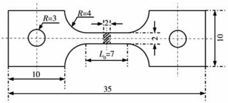 表1 试验合金化学成分 wB/% 使用FEI Quanta 650型扫描电子显微镜(SEM)和Talos F200X型透射电子显微镜(TEM)对试验合金微观组织结构进行表征。选择铸态合金进行DSC分析,升温速率为10 ℃/min,温度范围为20~700 ℃。采用OTF-1200X管式炉和WH-25型干燥箱分别对试验合金进行固溶和时效处理。固溶温度分别选取510 ℃、530 ℃和550 ℃,在每个固溶温度下分别保温2 h、4 h、6 h和8 h。在固溶的基础上进行时效处理,时效温度分别为140 ℃、160 ℃和180 ℃,总时效时间均为16 h。采用HVS-30Z/LCD型维氏硬度计测量硬度值,利用GatanMICROTEST 2000ES型原位拉伸台进行拉伸试验,拉伸试样尺寸如图1所示。