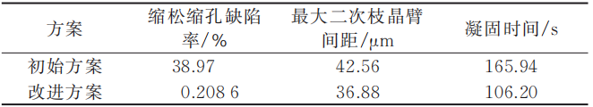 图11 铸件数值模拟缺陷最严重处金相组织图 表3 改进前后铸件质量指标对比示意图