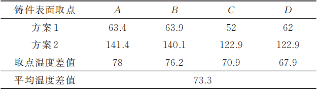 表1 镶件取点温度对比数据表(%)