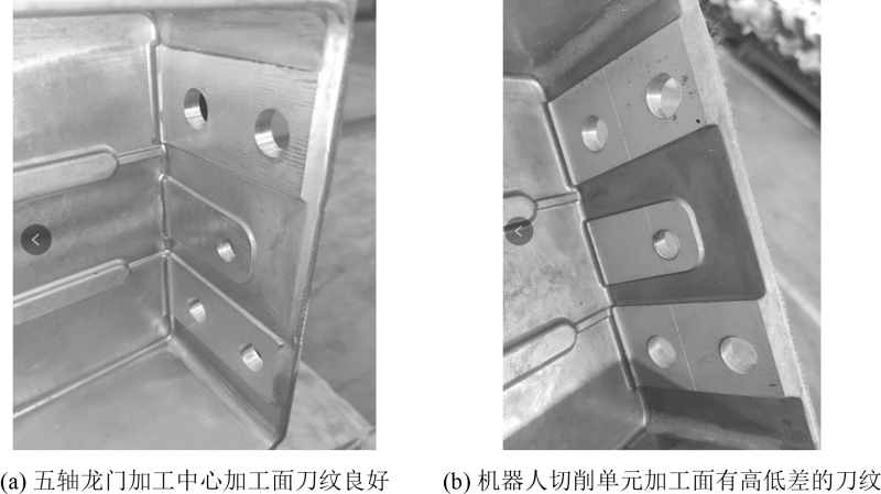 图11 五轴龙门加工中心与机器人切削单元加工面刀纹情况