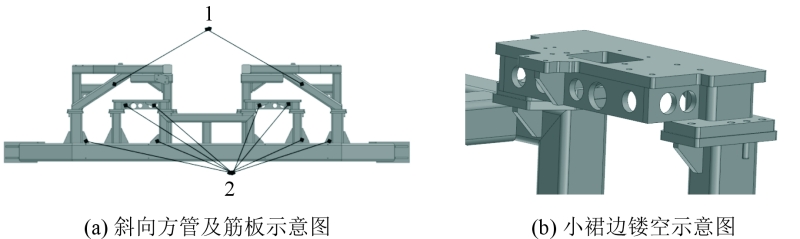 1.斜向方管 2.筋板