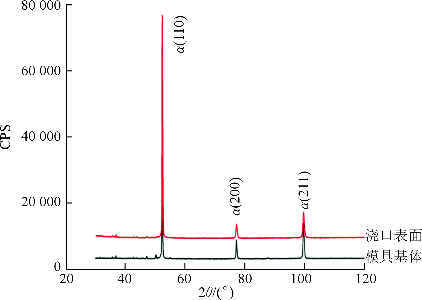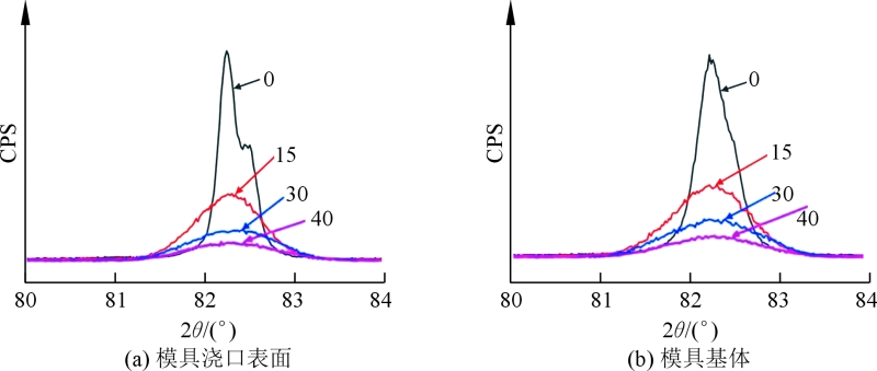 图9 不同残余应力下试样的XRD图谱 结论 (1)H13模具钢中存在较大尺寸(180 μm左右)的金属夹杂物,并且金属夹杂物和基体之间形成了裂纹,因此,夹杂物是形成裂纹的原因之一。 (2)模具浇口服役温度较高,形成深200 μm左右的脱碳层,并比基体析出更多的碳化物,弱化了模具材料的力学性能,易于疲劳裂纹的萌生和扩展。 (3)模具浇口表面和模具内部基体的残余应力为70.5 MPa,没有明显的残余应力梯度产生,残余应力不是模具过早开裂失效的原因。 《铝合金差压铸造用H13模具钢的失效分析》