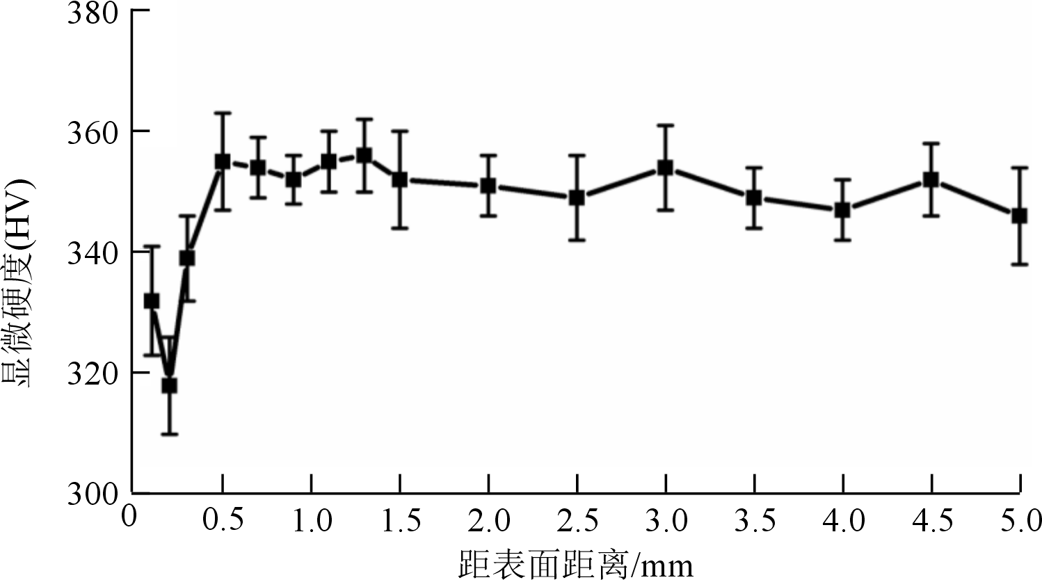图5 试样纵截面显微硬度分布