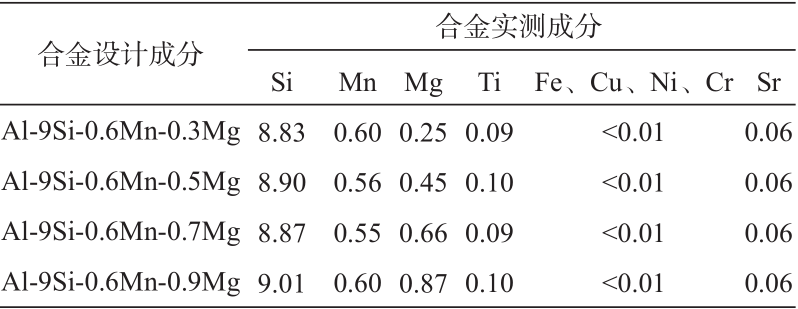 图6 冷却速度为9.7 ℃/s时合金的铸态力学性能 03 结论 (1)Al-Si-Mn-Mg合金中Mg元素在基体中均有分布,但多在Si相区域富集,影响凝固时Si相的凝固速率,导致在Mg元素含量较高时,合金中易产生较为粗大的Si相。 (2)Mg元素的增加影响了Al-Si-Mn-Mg合金中Sr对于共晶Si的变质效果,使合金中共晶Si的变质效果得到减弱,共晶Si变质不完全。 (3)随着合金中Mg元素的增加,合金的铸态抗拉强度及屈服强度增加,断后伸长率降低。 (4)随着冷却速度的增加,α-Al枝晶的二次枝晶臂间距明显减小。目前常用的免热处理Al-Si合金多以压铸件为主,压铸极高的冷却速率势必会导致合金的组织进一步细小,从而获得更高的力学性能。 作者