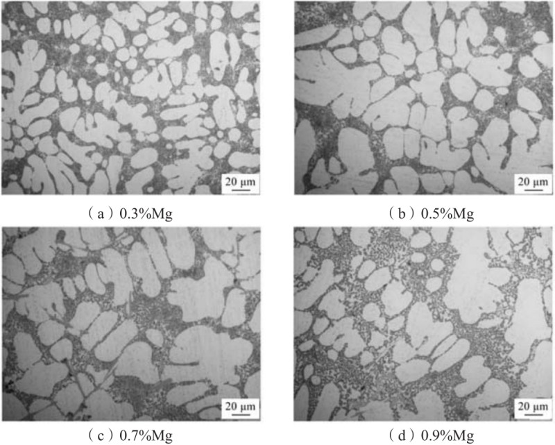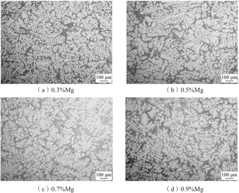 图2 不同Mg含量的Al-Si-Mn-Mg合金的金相组织