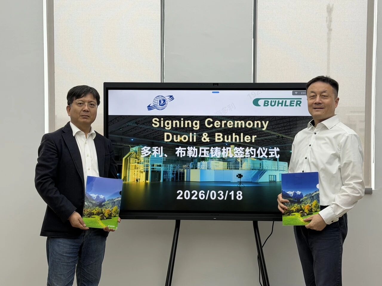 ![]() 多利科技总经理蒋建强、布勒大中华区压铸事业部总经理卢敏出席签约仪式 近日,在“2026 全国压铸年会”上,全球压铸解决方案服务商布勒集团正式宣布:中国大型一体化压铸领域领军企业多利科技与其完成新订单签约,将再度引进包含 Carat 920、Carat 720 机型在内的多套大型一体化压铸岛(即“9200T、7200T超大型压铸岛”——本刊注)。 此次合作,是多利科技对布勒压铸技术实力的高度认可。此前,多利科技已在中国四座生产基地布局投产布勒系列压铸设备;设备量产阶段良品率表现优异,运行持续稳定、故障率极低,为本次复购合作奠定了坚实基础。通过本次新增采购,多利科技将进一步完善产能布局,实现布勒 6100 吨至 9200 吨全系列超大型压铸设备全覆盖,持续强化其在大型一体化压铸领域的核心竞争优势。 多利科技的持续复购,是成熟技术、高效产能与深度互信携手打造长期战略合作的优质行业范例。未来双方将以技术创新为核心驱动力,共同推进大型一体化压铸技术迭代升级,为汽车轻量化与智能制造产业高质量发展持续注入新动能。