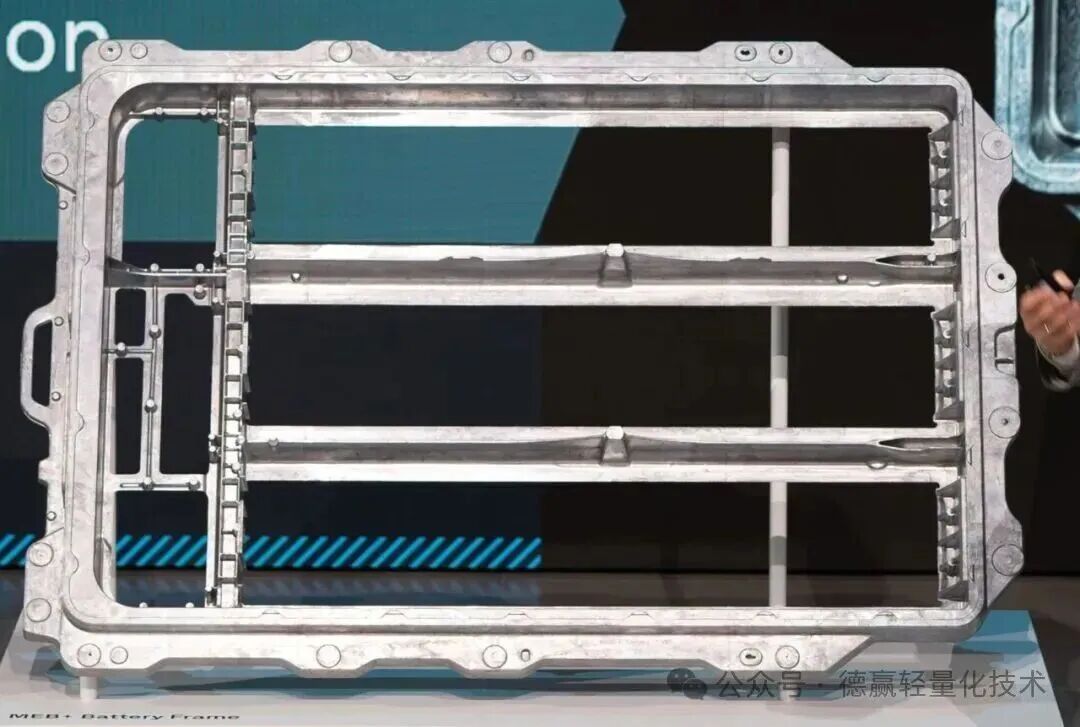 本田同样采用了一体化压铸电池托架,但本田的设计涵盖整个车底板区域——这片巨大表面导致压铸过程中锁定模具所需的缩模力大幅增加。 这意味着需要更大吨位的压铸设备——正如我们所见,本田在俄亥俄州使用6100吨级压铸机仅生产电池托盘半成品,而在中国则采用12000吨级压铸机一次性成型完整托盘。 大众则聚焦于电池托盘框架结构,规避大面积平面设计的同时仍集成大量组件。该框架需预留大量内部组件连接点,例如电池单元/模块、管理及冷却系统接口。 此设计选择的另一关键考量是重量。大众很可能利用底板空隙填装其他组件,这些组件的重量和厚度将远低于压铸工艺所能实现的水平。