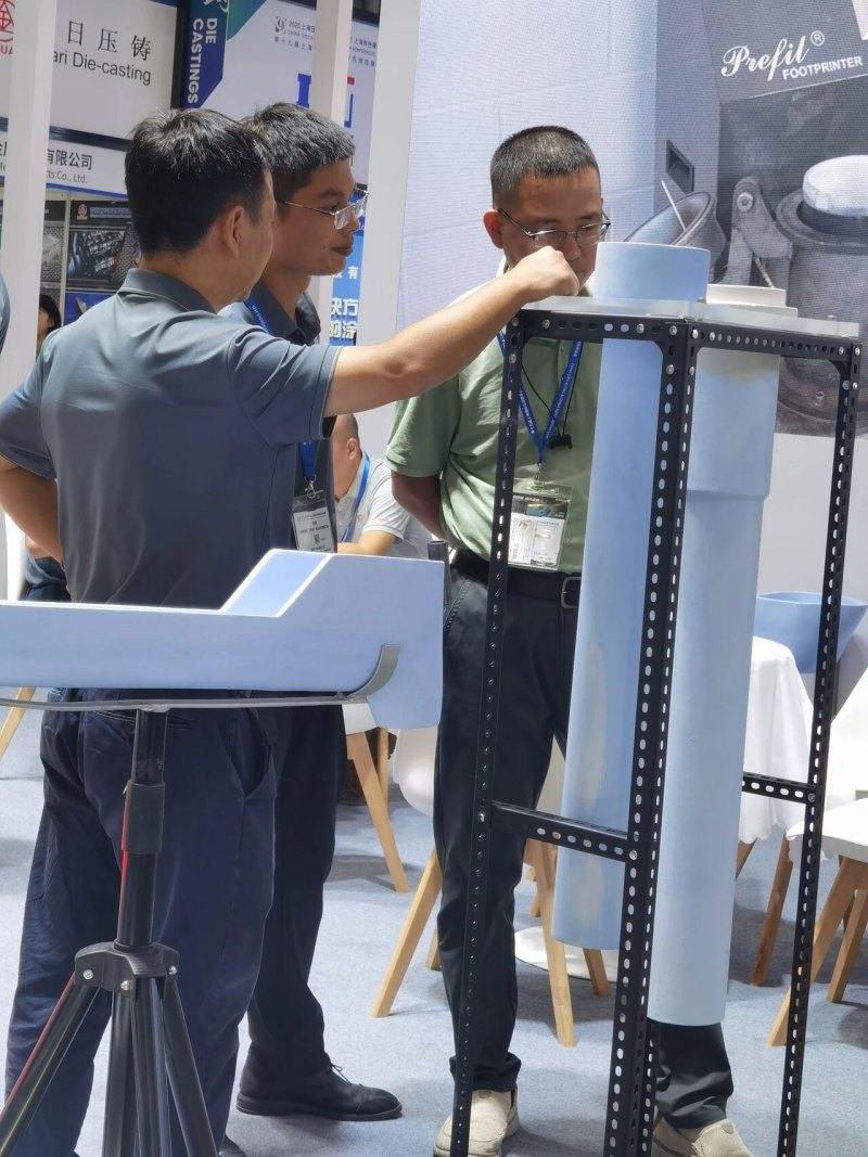 Pyrotek 展示的升液管产品 面对大型一体化压铸这一革命性技术趋势,Pyrotek针对性推出大型定量泵,可实现铝液从保温炉到压铸机的稳定送料,配合定量流槽、加料漏斗、定量升液管等全套配件及耗材,为减震塔、后底盘总成等大型一体化压铸件的量产提供了关键技术支撑,有效解决了传统工艺中零件多、装配难、成本高的痛点。